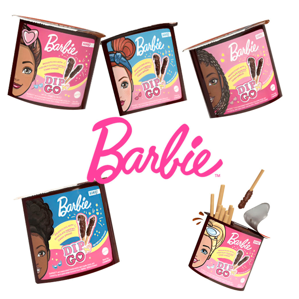 Dulce explosivo con Barbie Dip N Go Chocolate Popping Candy. 55g por porción, pack de 96 piezas. Perfecto para fiestas, sorpresas y momentos divertidos que todos amarán.