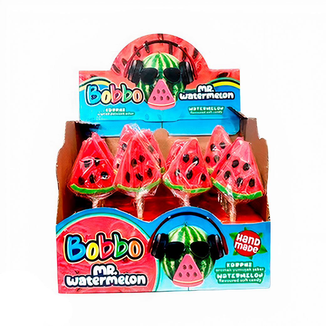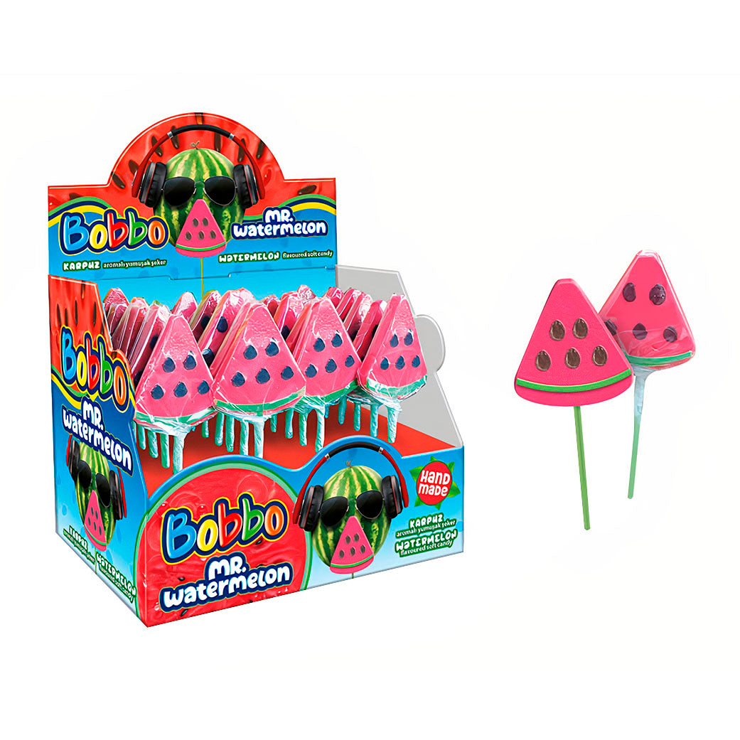 Bobbo Mr. Watermelon Sugar, 32g por unidad, pack de 192 piezas. Dulces con sabor a sandía, ideales para fiestas, compartir y momentos divertidos.