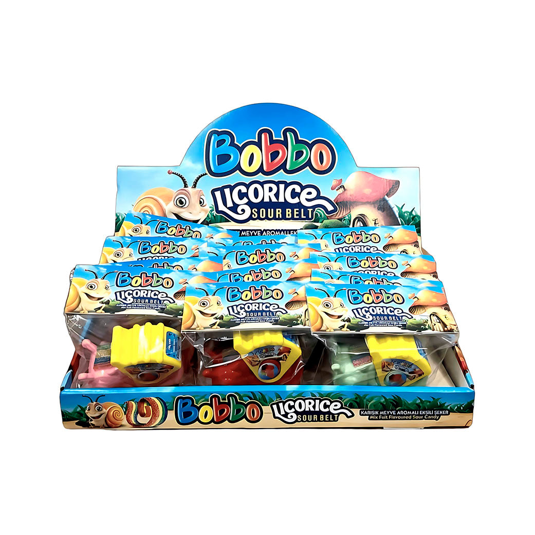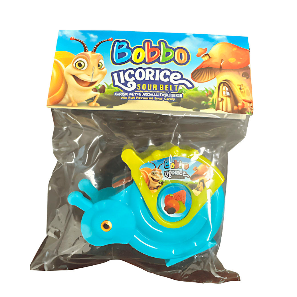 Bobbo Snail Licorice Sour Belt, 100g por unidad, pack de 72 piezas. Dulces ácidos y divertidos, ideales para compartir y sorprender en fiestas.