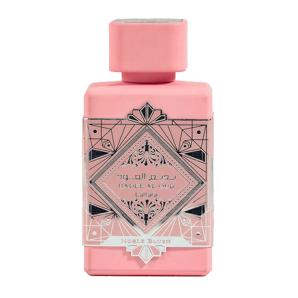 Lattafa Badee Al Oud Noble Blush EDP Spray, 100ml. Fragancia femenina con aroma sofisticado y duradero, ideal para uso diario y eventos especiales.