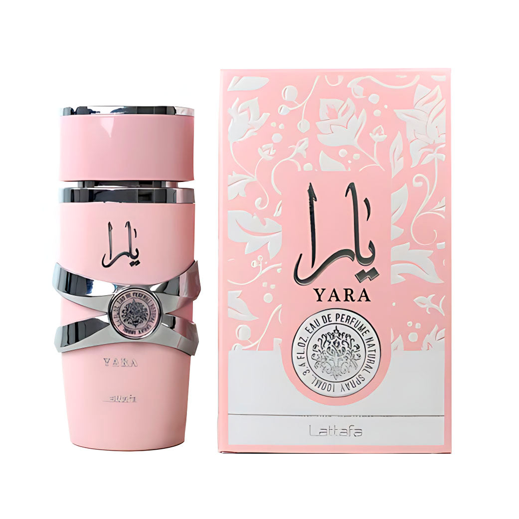 Lattafa Yara EDP Spray, 100ml. Perfume femenino sofisticado con aroma dulce y afrutado, perfecto para uso diario y ocasiones especiales.