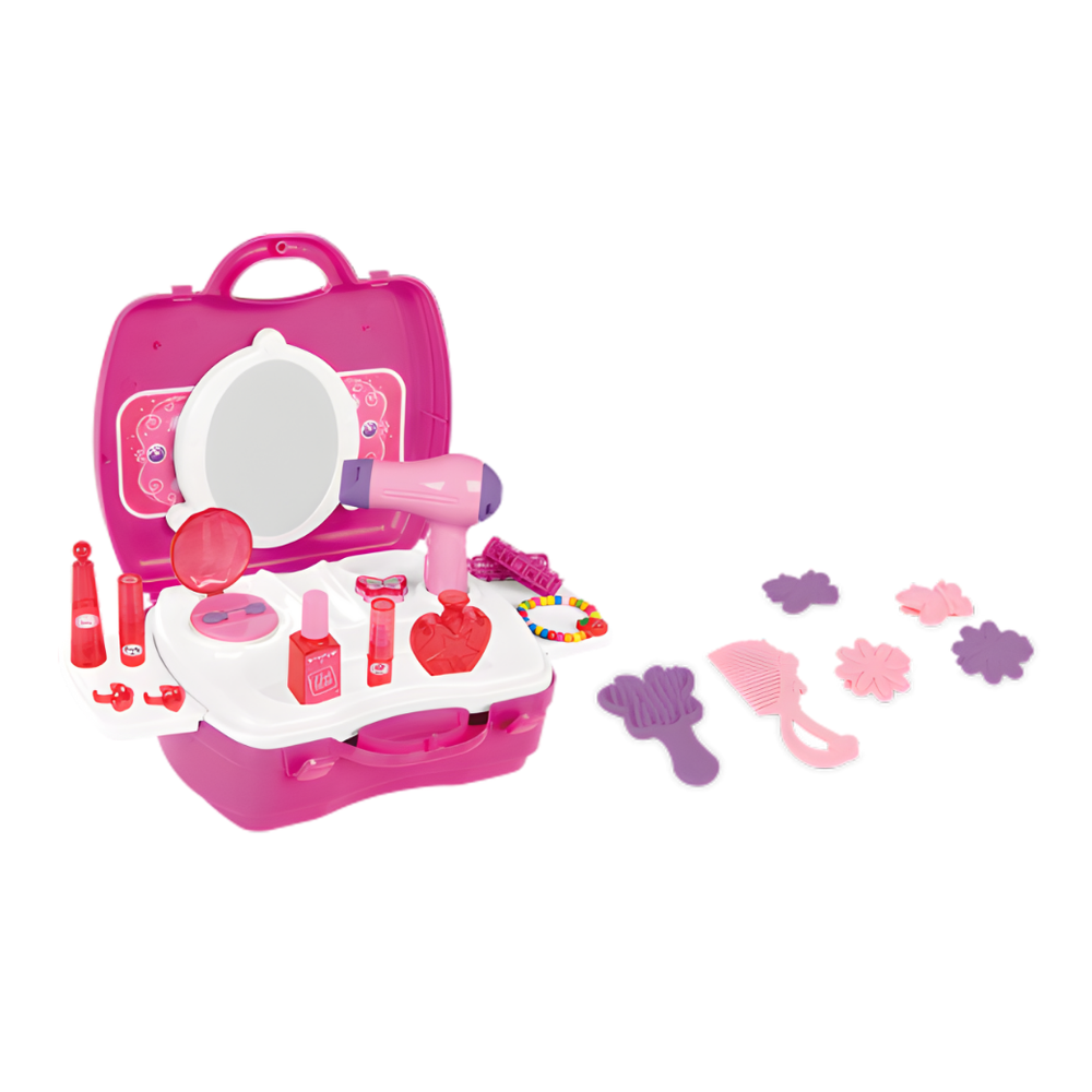 La Maleta de Tocador Pilsan permite a las niñas jugar a maquillarse y cuidar su estilo, fomentando la creatividad y el juego de roles. Diseño compacto y práctico para guardar y transportar todas sus piezas.
