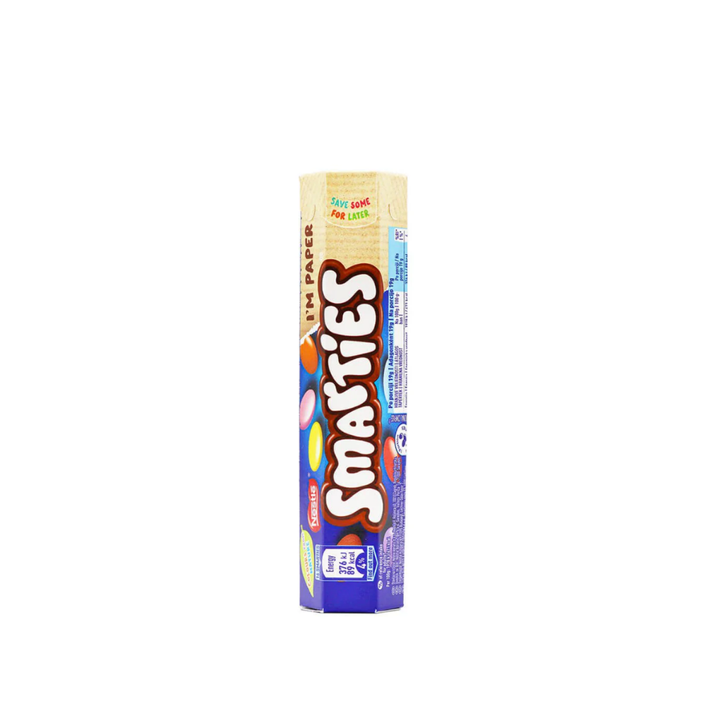 Los Smarties Chocolate con Leche de 38 g ofrecen un chocolate suave y coloridas piezas de azúcar que encantan a niños y adultos. Presentación en caja de 24 unidades